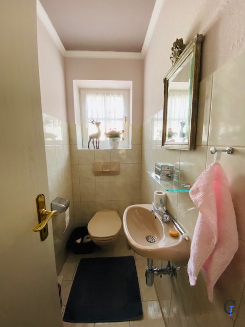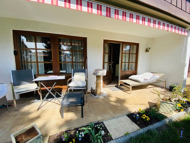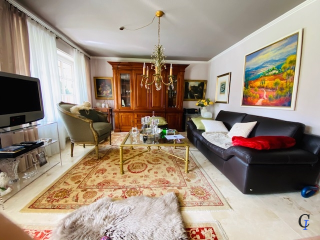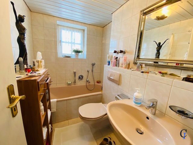 Im Jahr 2016 ist der Umbau der Heizungsanlage von Öl auf Fernwärme erfolgt. In der Wohnung befindet sich ein Gäste WC und ein Bad mit Wanne. Beide Bäder haben ein Fenster. Die Fenster sind aus Holz und haben eine Isolierverglasung. Die Terrasse hat eine Süd-West Ausrichtung und somit viel Sonne. Eine schöne große neue Markise schützt vor zu viel Wärme im Sommer. Der Boden in der Wohnung ist Hochwertig und mit Marmorbelag ausgelegt. Die Wohnung hat eine schöne helle 10 Jahre alte Küche. Insgesamt ist die Wohnung hochwertig. Letzte Sanierungen in 2011 Erneuerung der Böden, 2016 Heizung, 2017 Renovierung der Wohnung, 2018 Markise. Die Garage befindet sich am Haus.