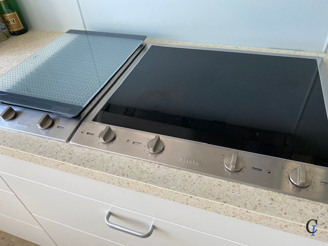 Der Herd ist von Miele mit einem Abzug von Berbel. Neben dem Herd befindet sich ein elektrischer Grill für besondere Anlässe.