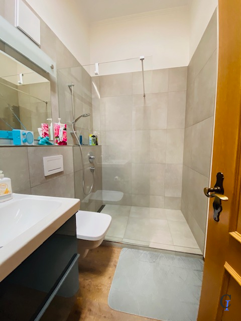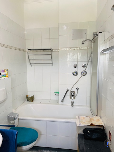Die Wohnung hat einen großen Wohn und Essbereich mit Ausgang zum Balkon. Es befindet sich ein Zugang zum Bad mit Wanne vom Schlafzimmer aus. Im Schlafzimmer befindet sich ein gr. angefertigter Kleiderschrank. Dieser kann erworben werden. Das zweite Schlafzimmer wird derzeit als Büro genutzt. Es befindet sich ein großer Kleiderschrank im Zimmer, welcher ebenfalls erworben werden kann. Im zweiten Bad befindet sich das Fenster im Dachbereich. Es ist ausgestattet mit einer großen Glasdusche. Die Küche hat ein Fenster und ist wenige Jahre alt. Die Böden sind mit einem hochwertigen Vinylboden ausgestattet. Das Gästeschlafzimmer ist mit Auslegware ausgelegt. Die Bäder sind gefliest. Es befinden sich nur 6 Wohneinheiten im Eingang. Alle Türen in der Wohnung sind aus Holz aber kein Vollholz. In der Wohnung befindet sich neben der Küche ein Hauswirtschaftsraum.