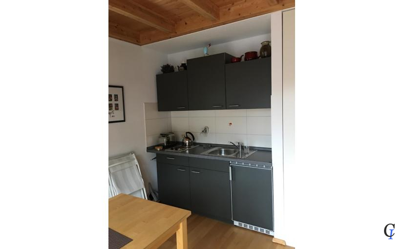 Im Wohnraum eine kleine Küchenzeile. Über eine kleine Treppe erreicht man den Schlafbereich mit Schräge. In der Wohnung befindet sich ein Duschbad ohne Fenster. Die Wohnung ist Barrierefrei und ist über eine Treppe oder Fahrstuhl zu erreichen. Zur Wohnung gehört ein Keller und ein Außenstellplatz für PKW.